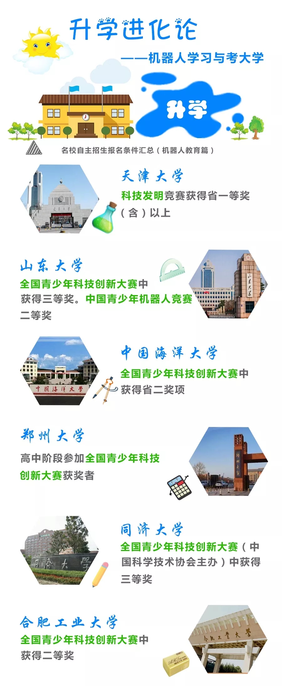 現(xiàn)在,大學(xué)已競相開設(shè)機(jī)器人專業(yè),高考政策對機(jī)器人人才也開設(shè)了自主招生渠道,未來教育的發(fā)展趨勢也可預(yù)想而知。
